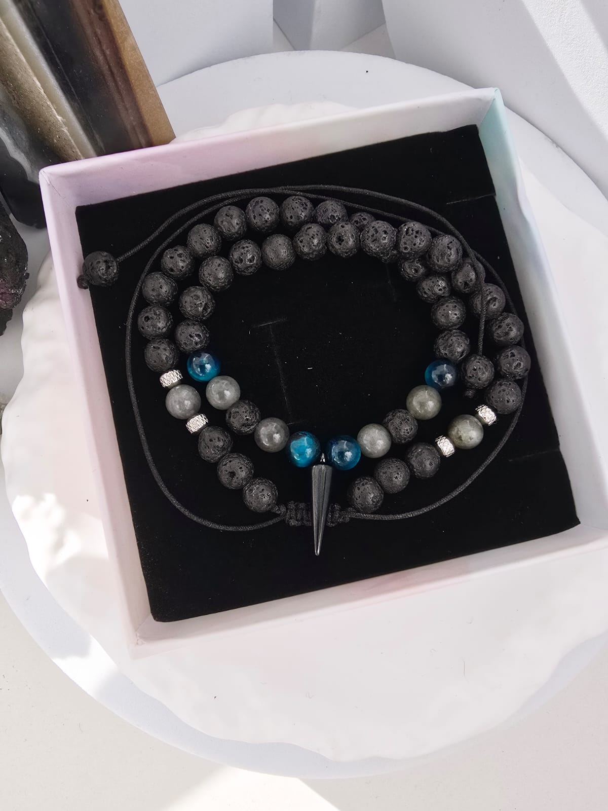 Bransoletka męska z labradorytem, jaspisem brązowym, turmalinem czarnym