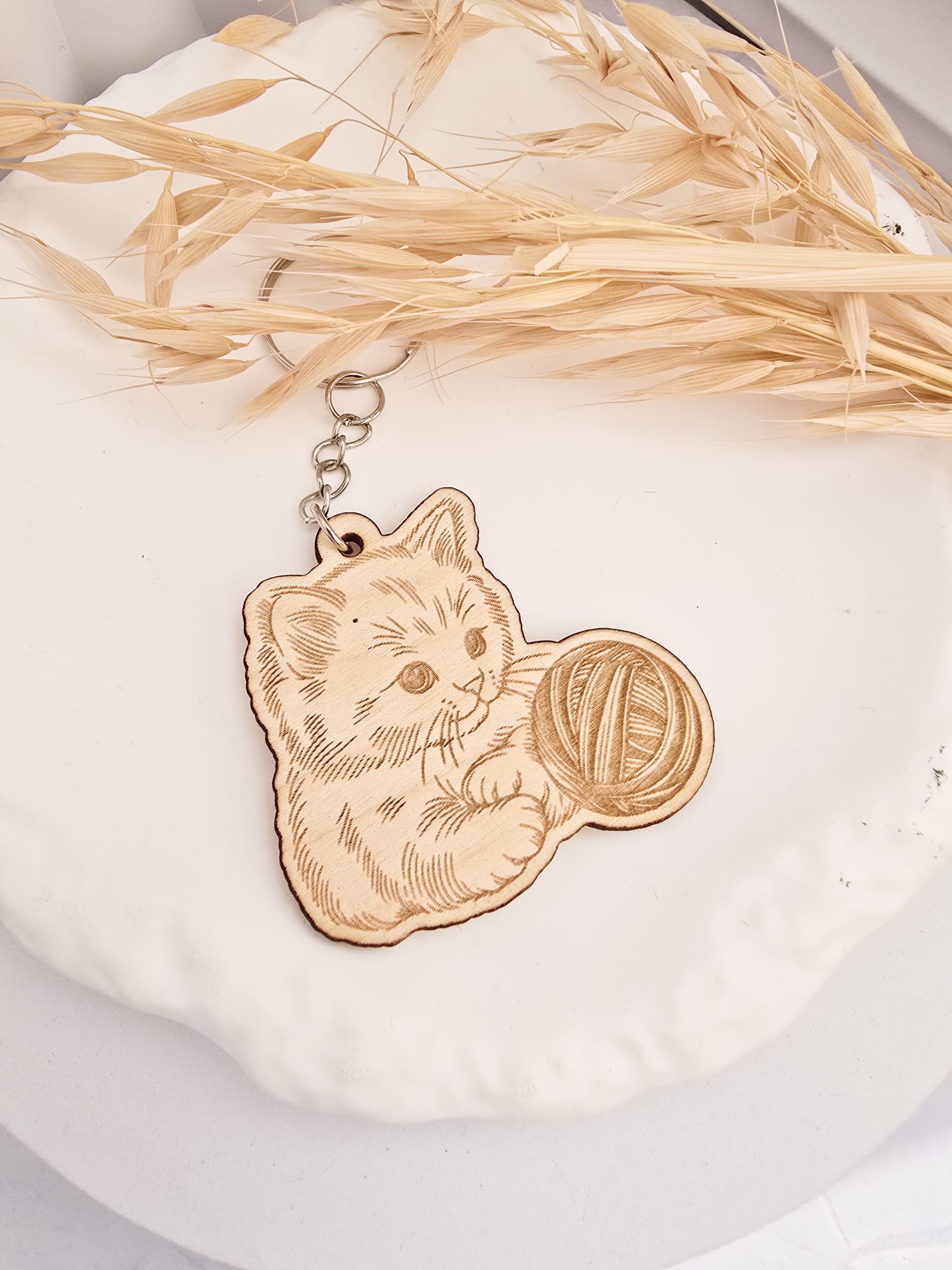 Drewniany breloczek kotek – sklejka 3 mm | 5,5 x 6 cm