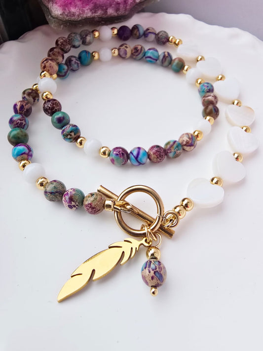 Naszyjnik z jaspisem cesarskim i masą perłową- Kamienie Naturalne | Miloo