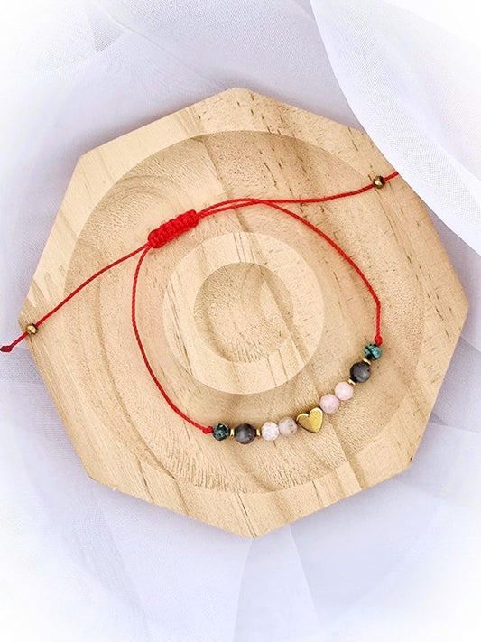 Bransoletka z opalem różowym, czarnym labradorytem i jaspisem Afrykańskim