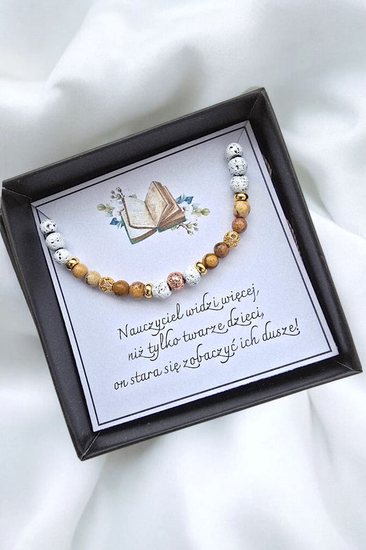 Bransoletka dla nauczyciela- lawa wulkaniczna, jaspis brązowy