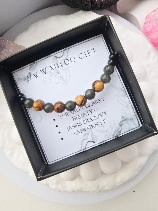 Bransoletka męska z labradorytem, jaspisem brązowym, turmalinem czarnym