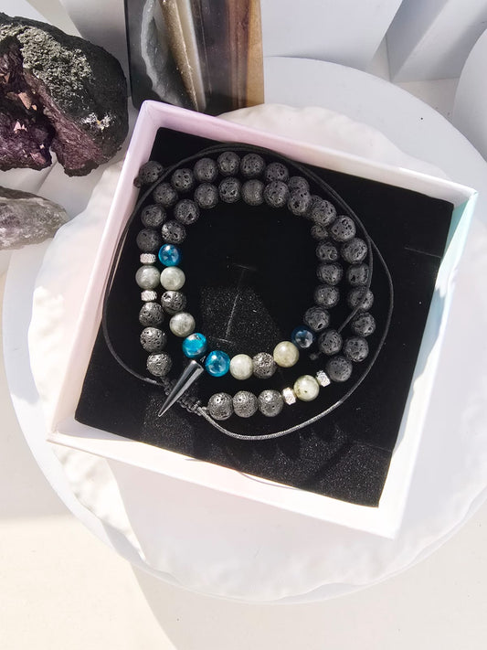 Naszyjnik męski- lawa wulkaniczna, labradoryt, tygrysie oko