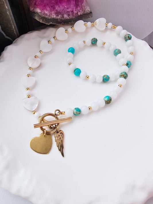 naszyjnik- choker z masą perłową, tridacna i turkusem z osadami morskimi - Kamienie Naturalne | Miloo