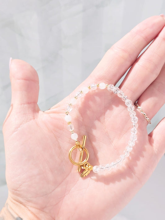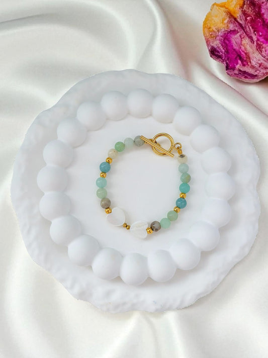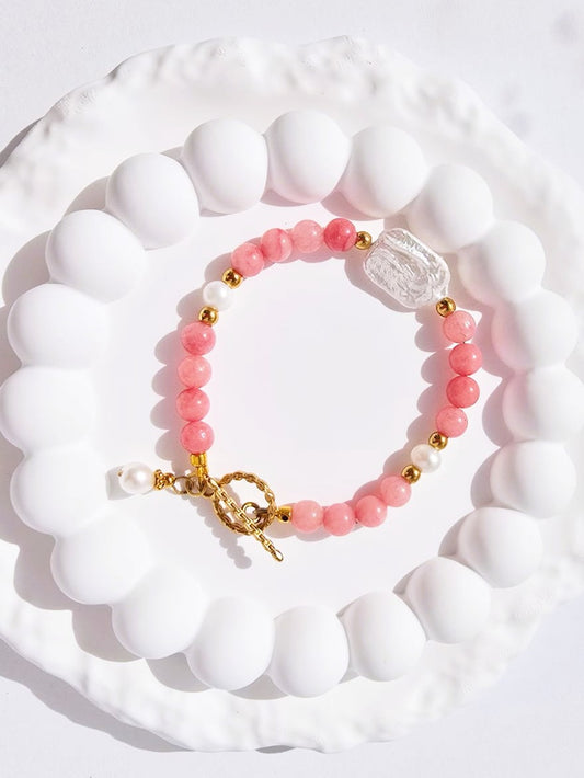 Bransoletka z perłą słodkowodną, masą perłową i rodonitem