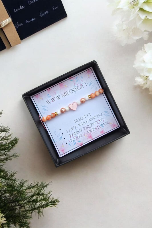 Bransoletka z Kamieniem księżycowym, lawą wulkaniczną, różowym awenturynem i hematytem