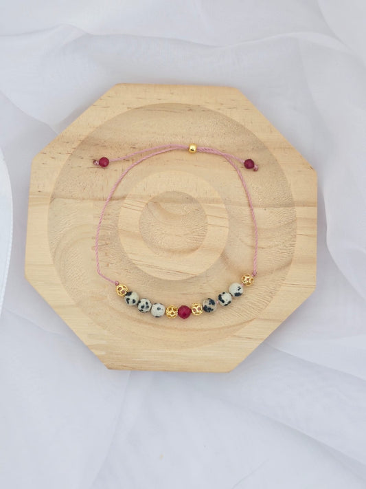 Bransoletka z jaspisem dalmatyńskim i rubinem
