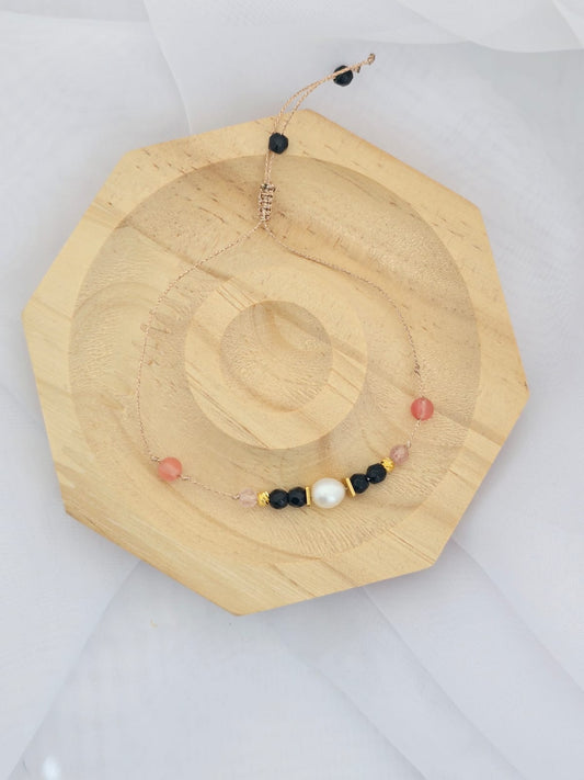 Bransoletka z perłą słodkowodną, onyksem i kwarcem wiśniowym