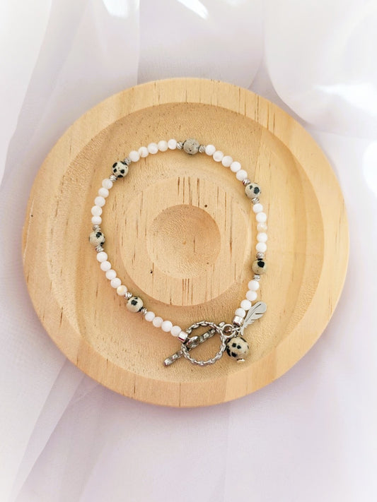 Bransoletka- Jaspis dalmatyński i masa perłowa