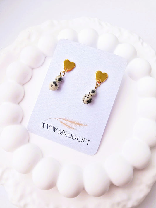 Kolczyki serduszka z jaspisem dalmatyńskim