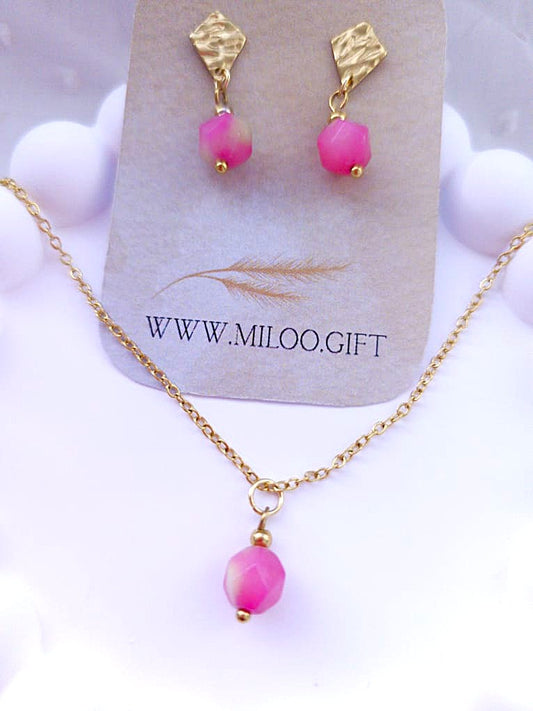 Komplet biżuterii z jaspisem brzoskwiniowym i selenitem