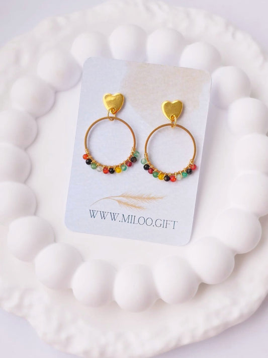 Kolczyki pozłacane z kolorowym agatem – koło życia
