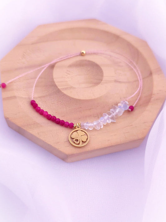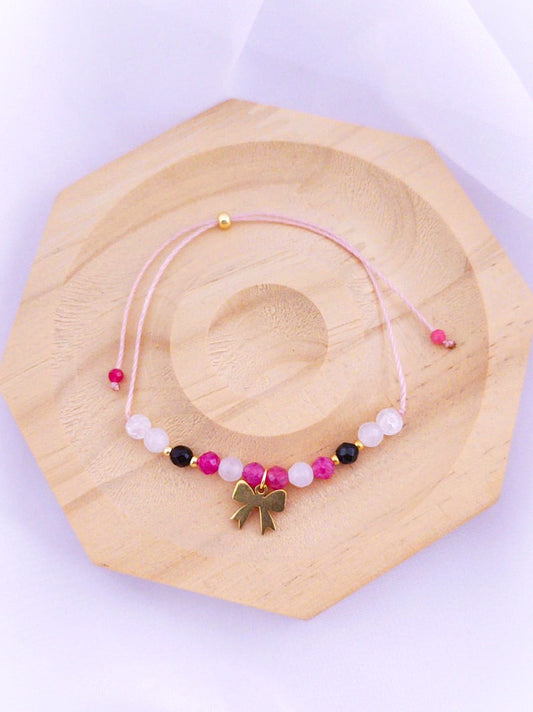 Bransoletka- kokardka - onyks, kryształ górski, turmalin różowy