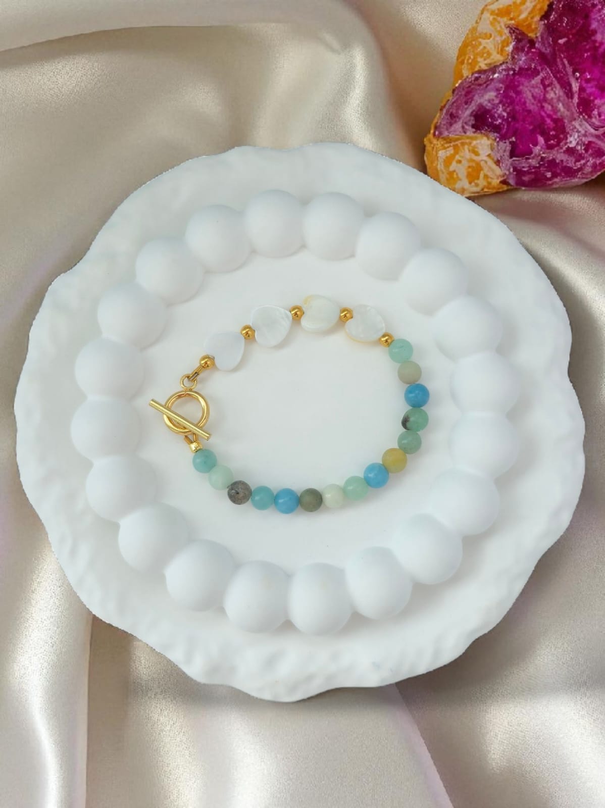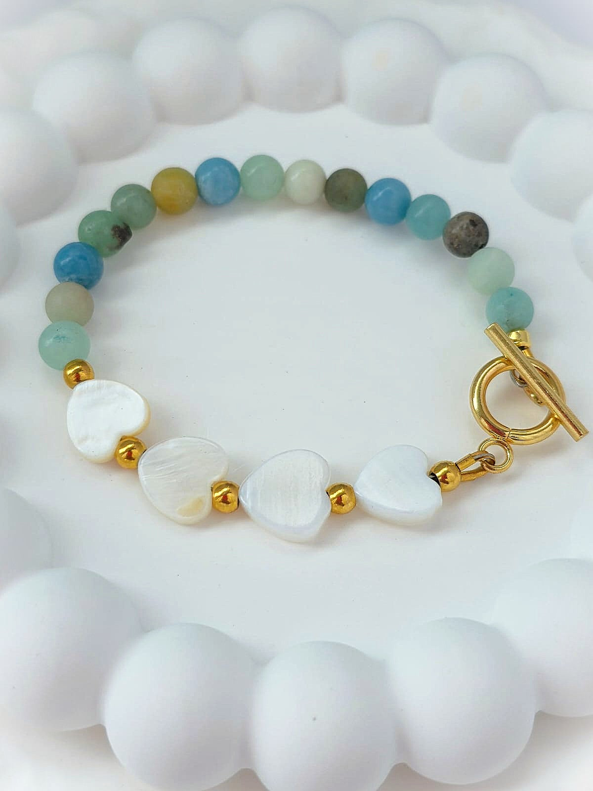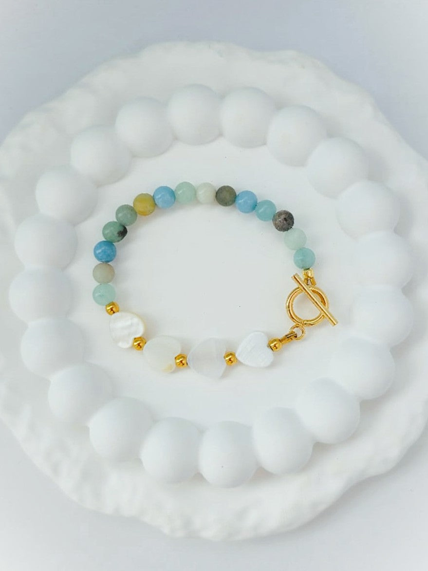 Bransoletka z amazonitem i masą perłową to delikatna kompozycja