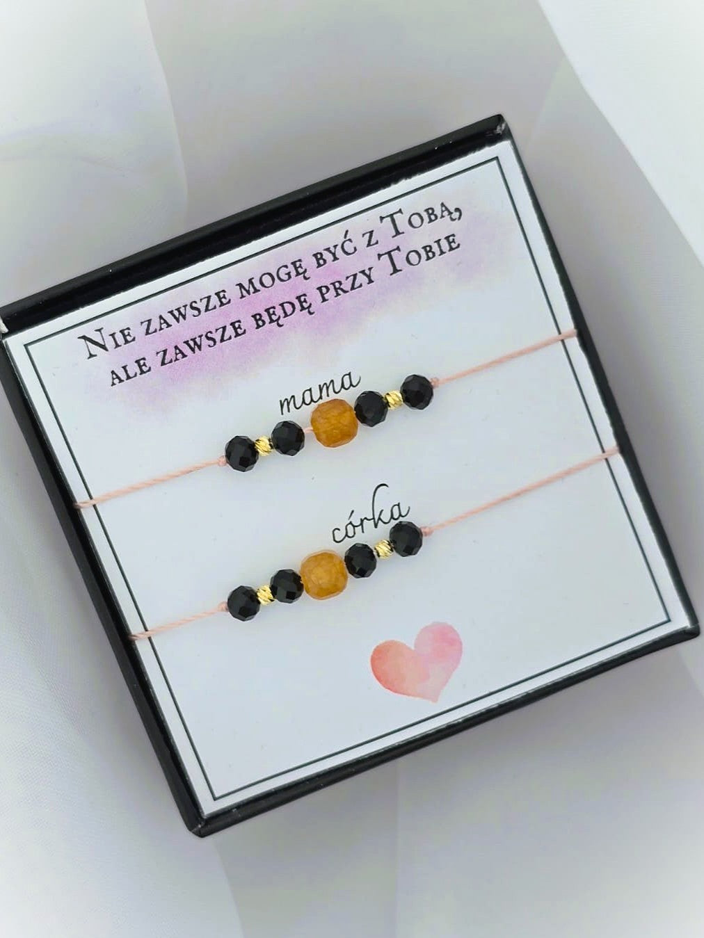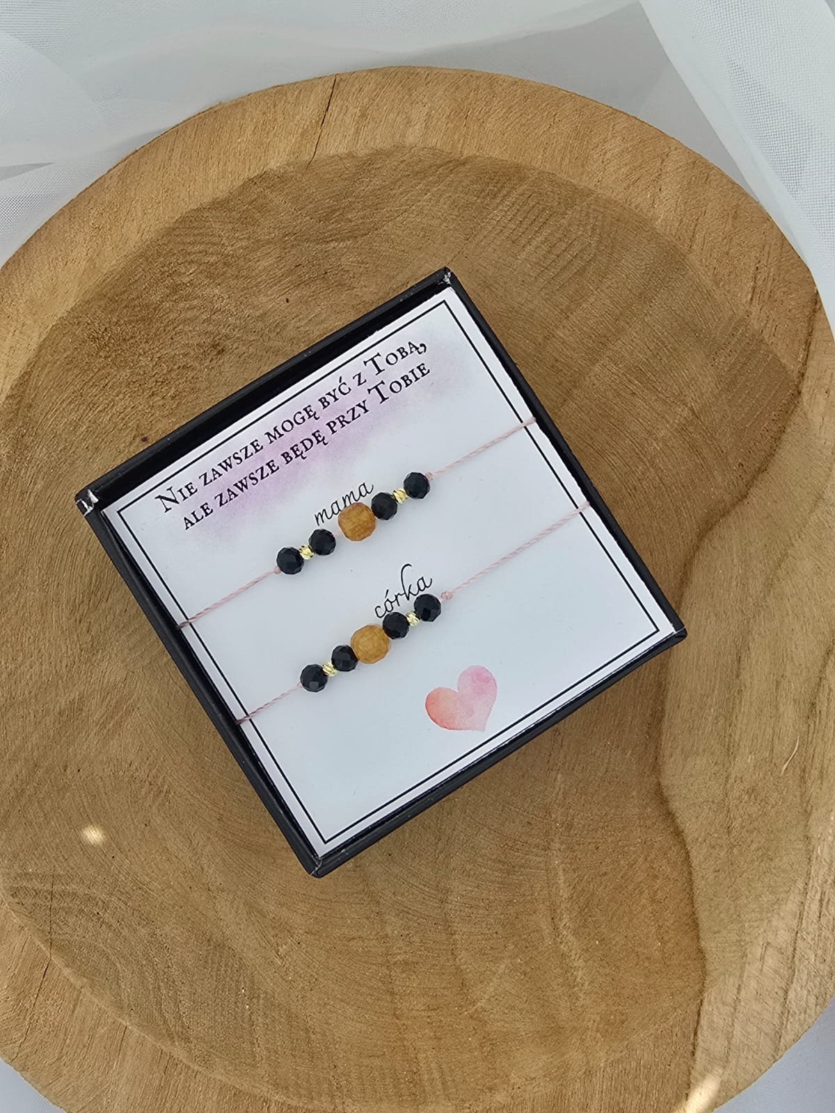 Bransoletka dla mamy i córki- czarny turmalin i pomarańczowy turmalin