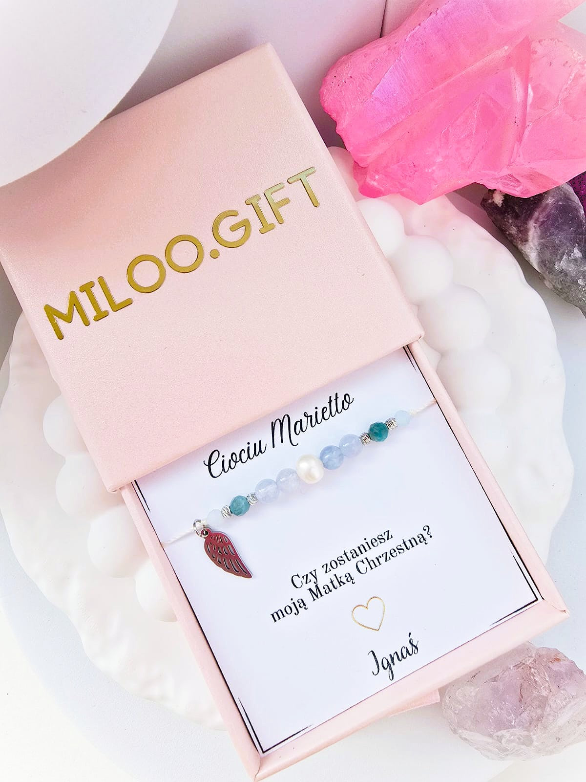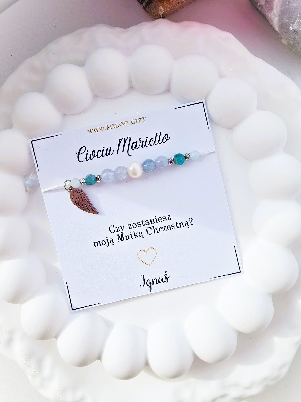 Bransoletka dla Matki Chrzestnej- apatyt, akwamaryn, perła