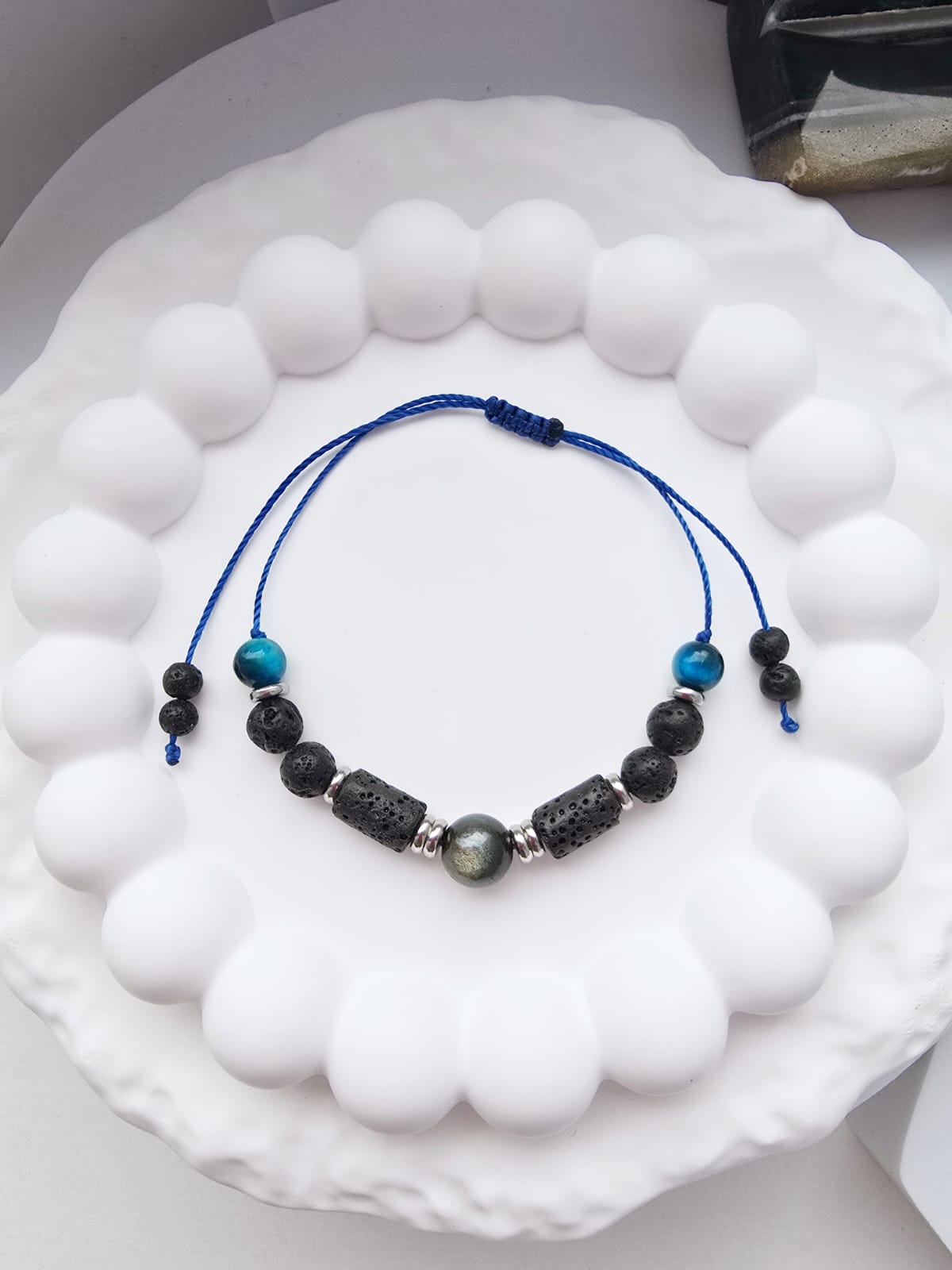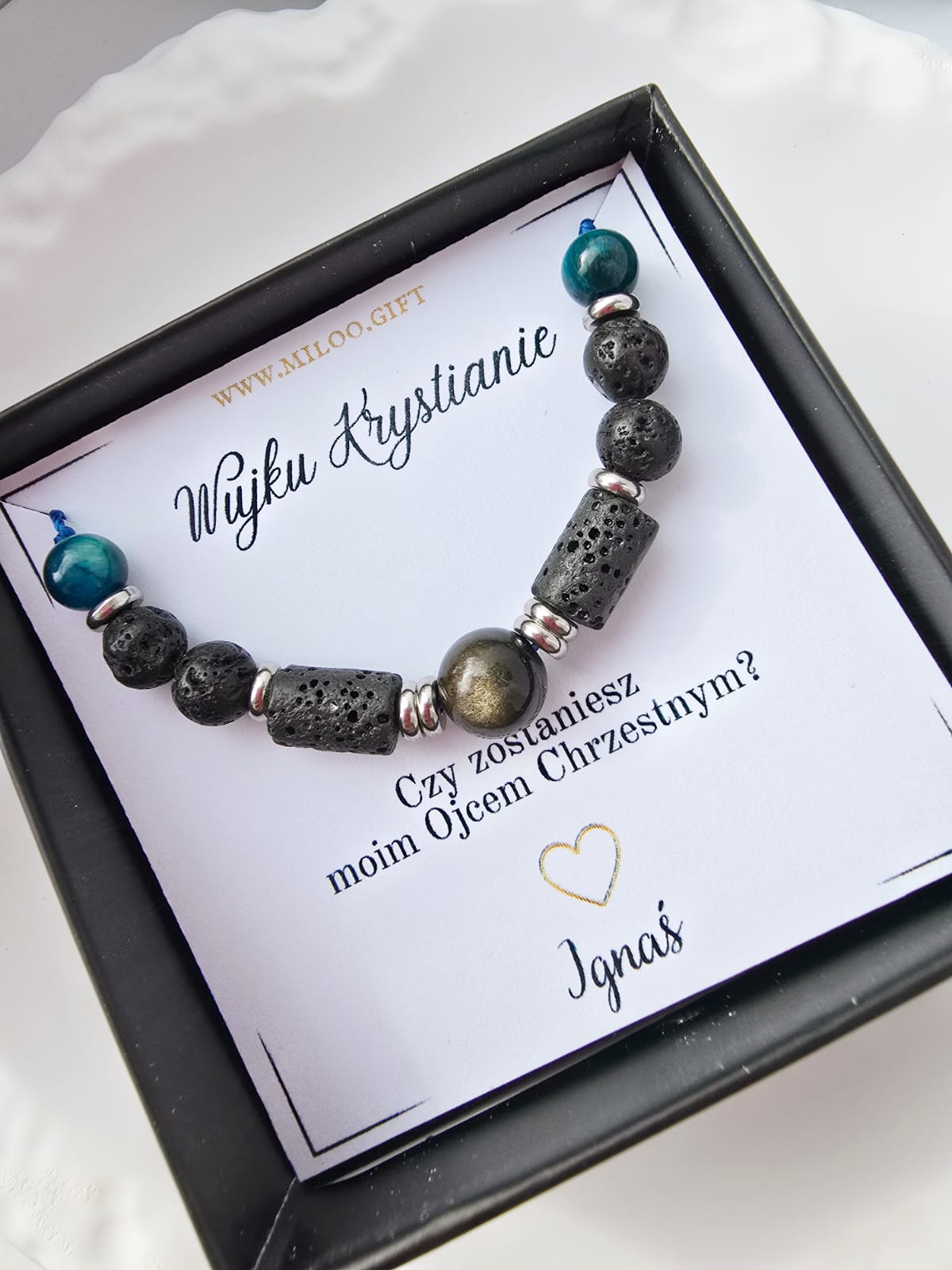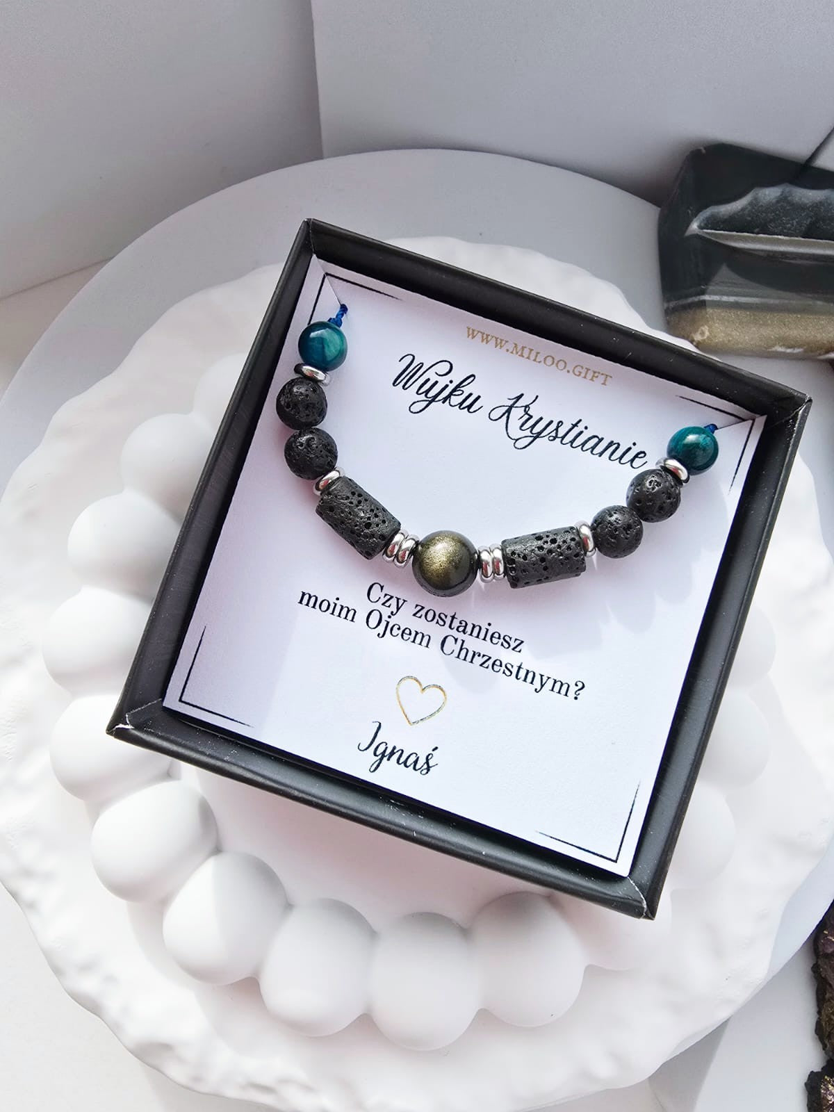 Bransoletka dla Ojca Chrzestnego tygrysie oko, lawa wulkaniczna,obsydian