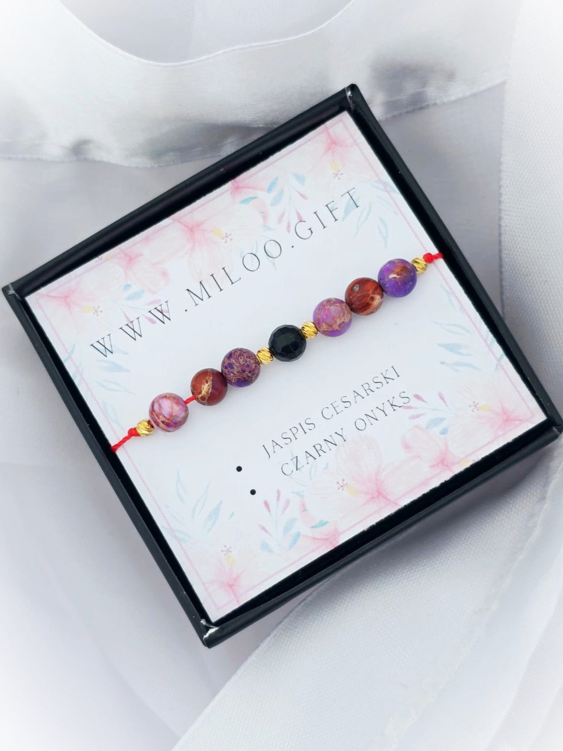 Bransoletka na sznurku z jaspisem cesarskim i onyksem czarnym