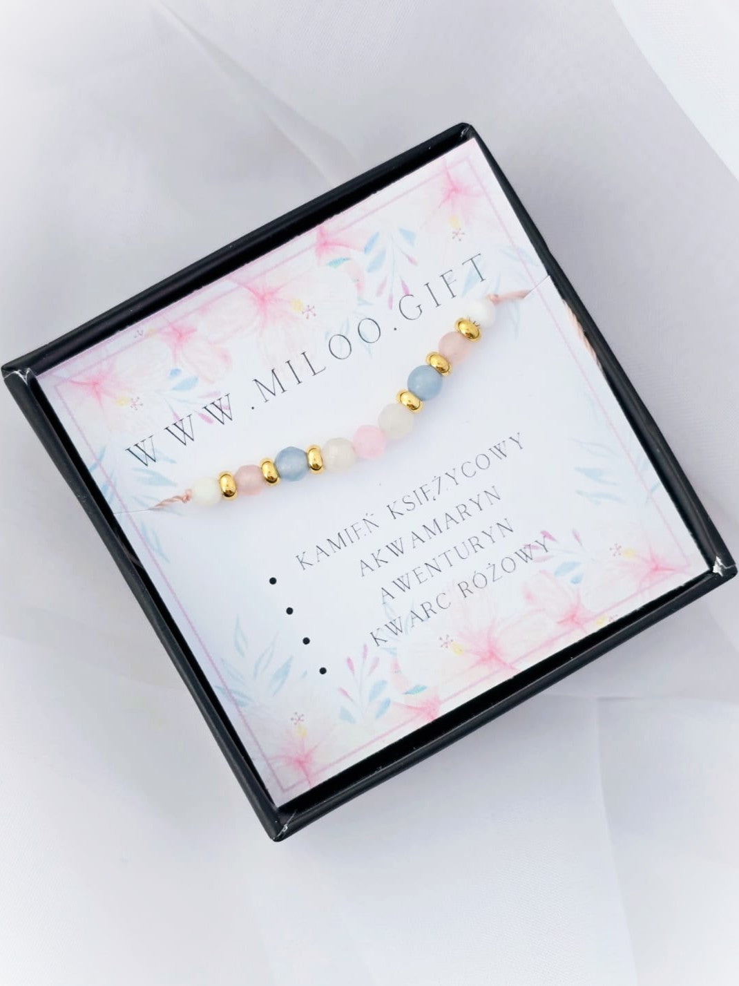 Bransoletka pełna pozytywnej energii, z kwarcem różowym, kamieniem księżycowym, akwamarynem i awenturynem