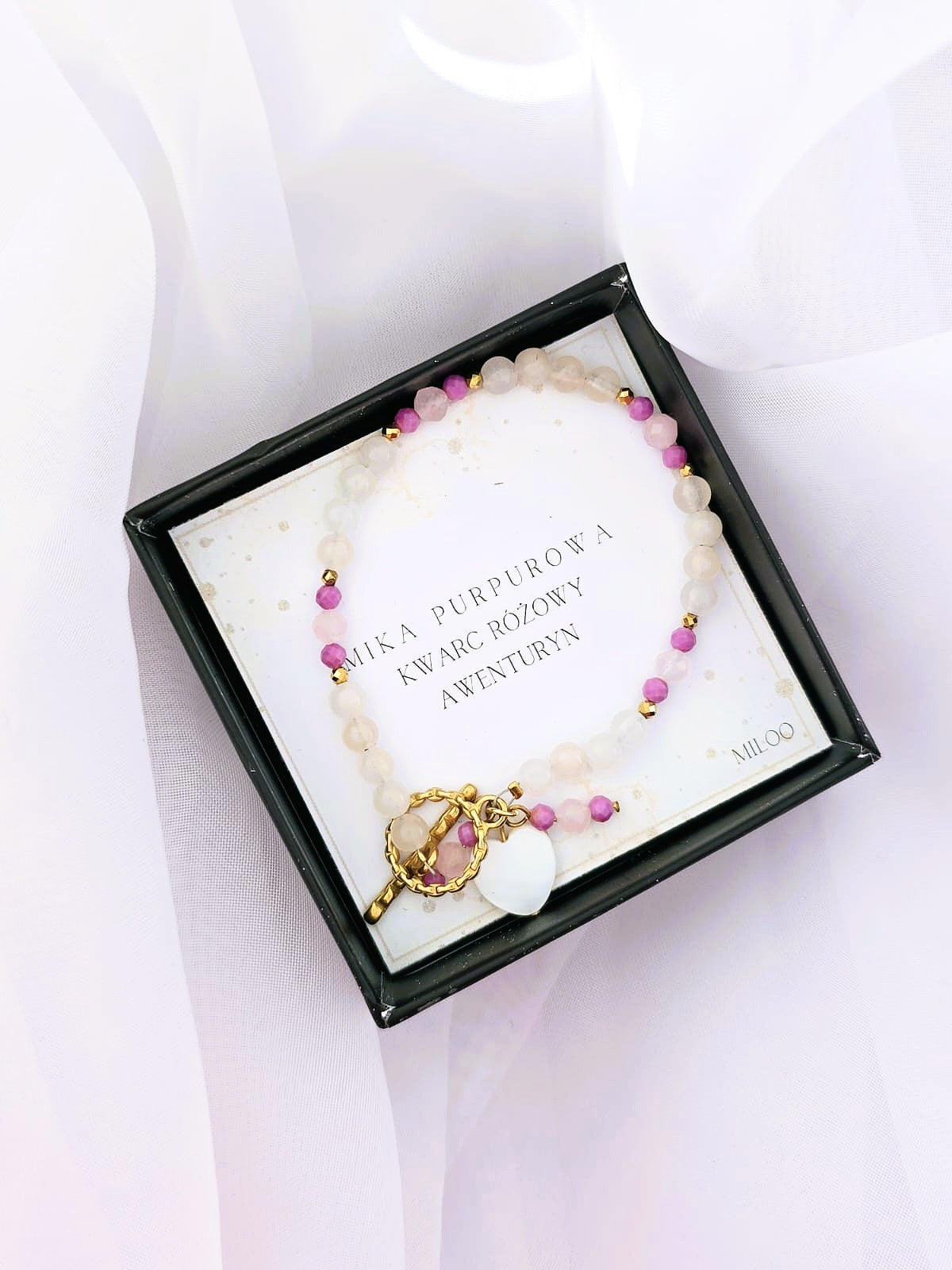 Bransoletka- z purpurową miką, awenturynem i kwarcem różowym