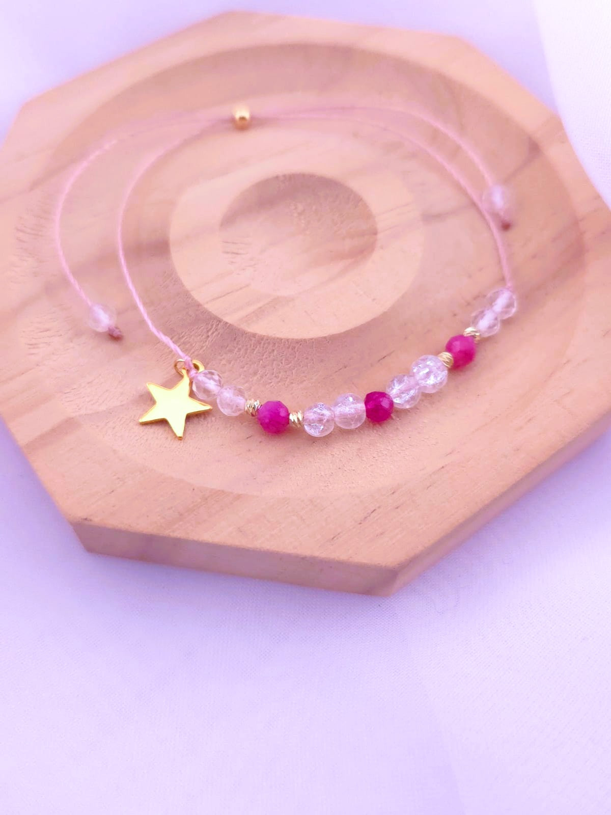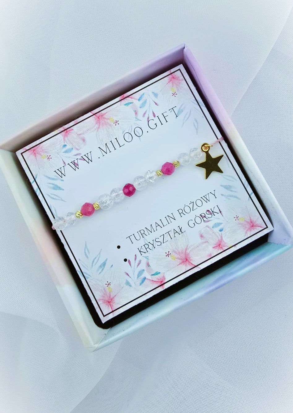 Bransoletka z różowym turmalinem i kryształem górskim