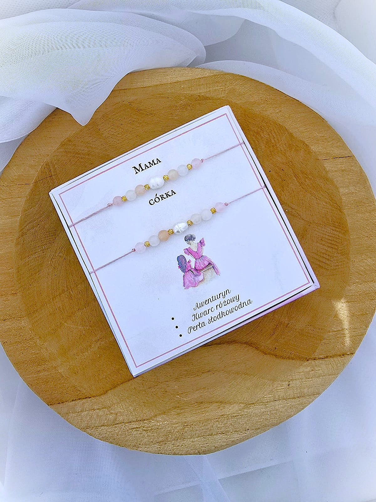 Bransoletki dla mamy i córki- Kwarc różowy, perła słodkowodna, awenturyn