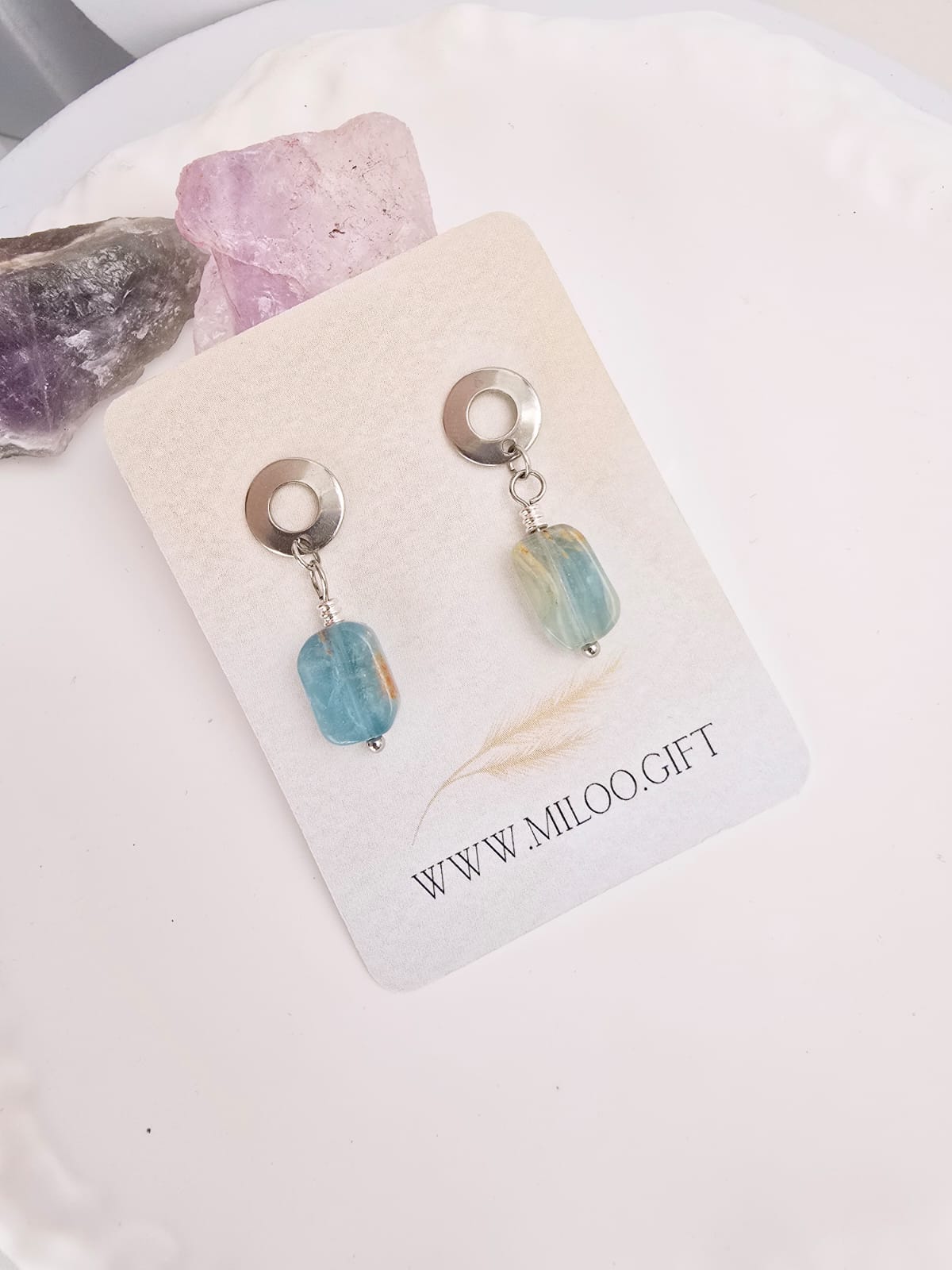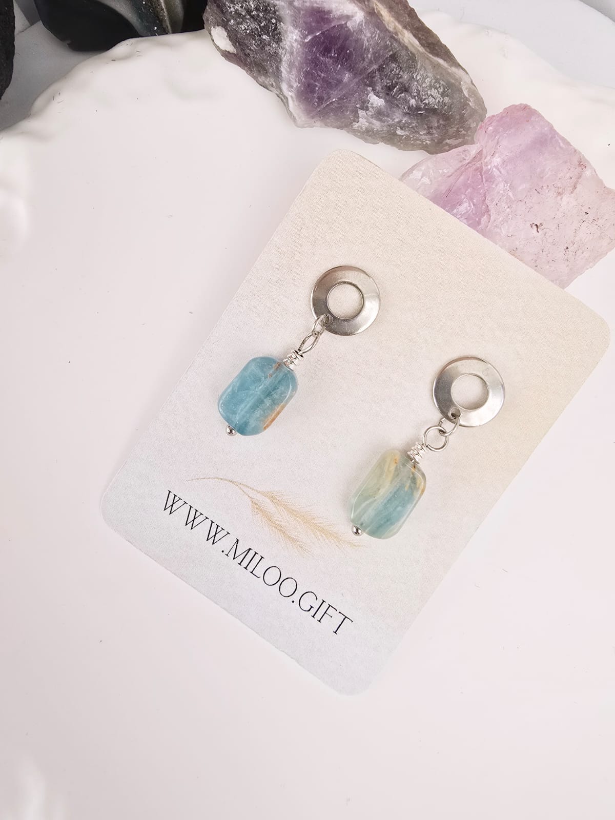 Kolczyki w kolorze srebrnym z prostokątnym kalcytem