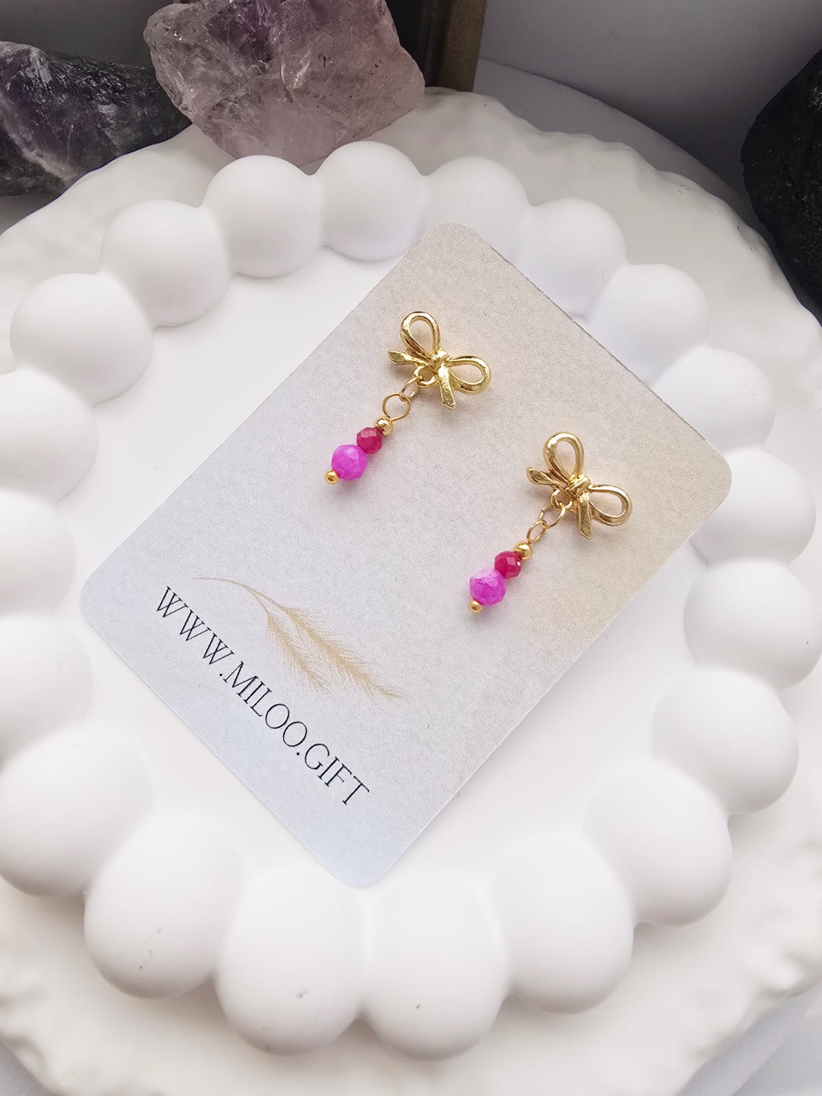 Kolczyki wiszące z różowym turmalinem i bazą w kształcie kokardki