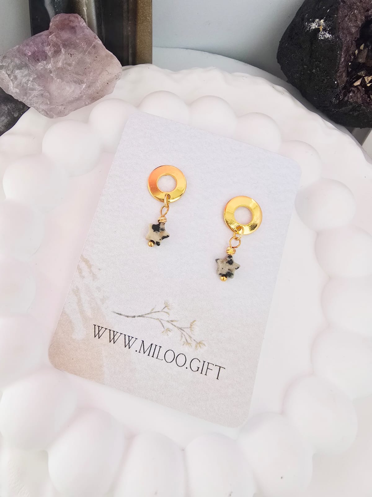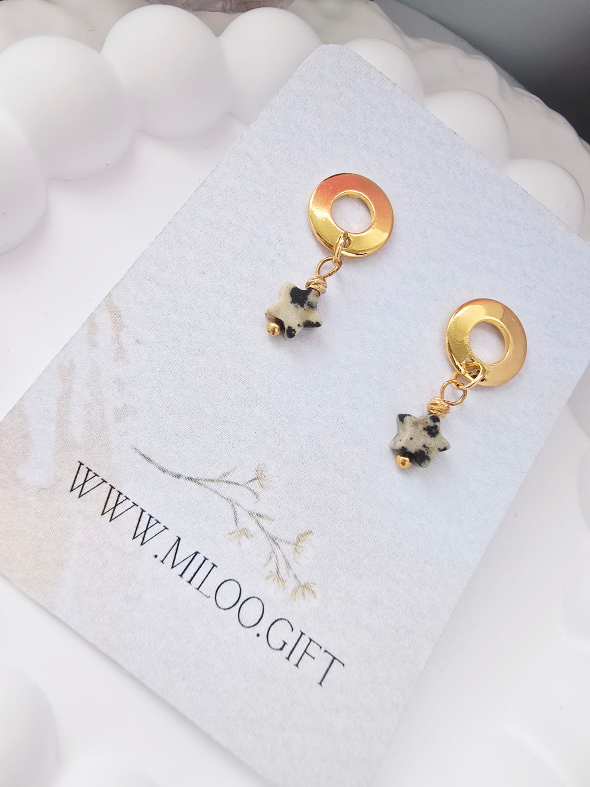 Wiszące kolczyki z jaspisem dalmatyńskim, to uroczy akcent dla każdej stylizacji.