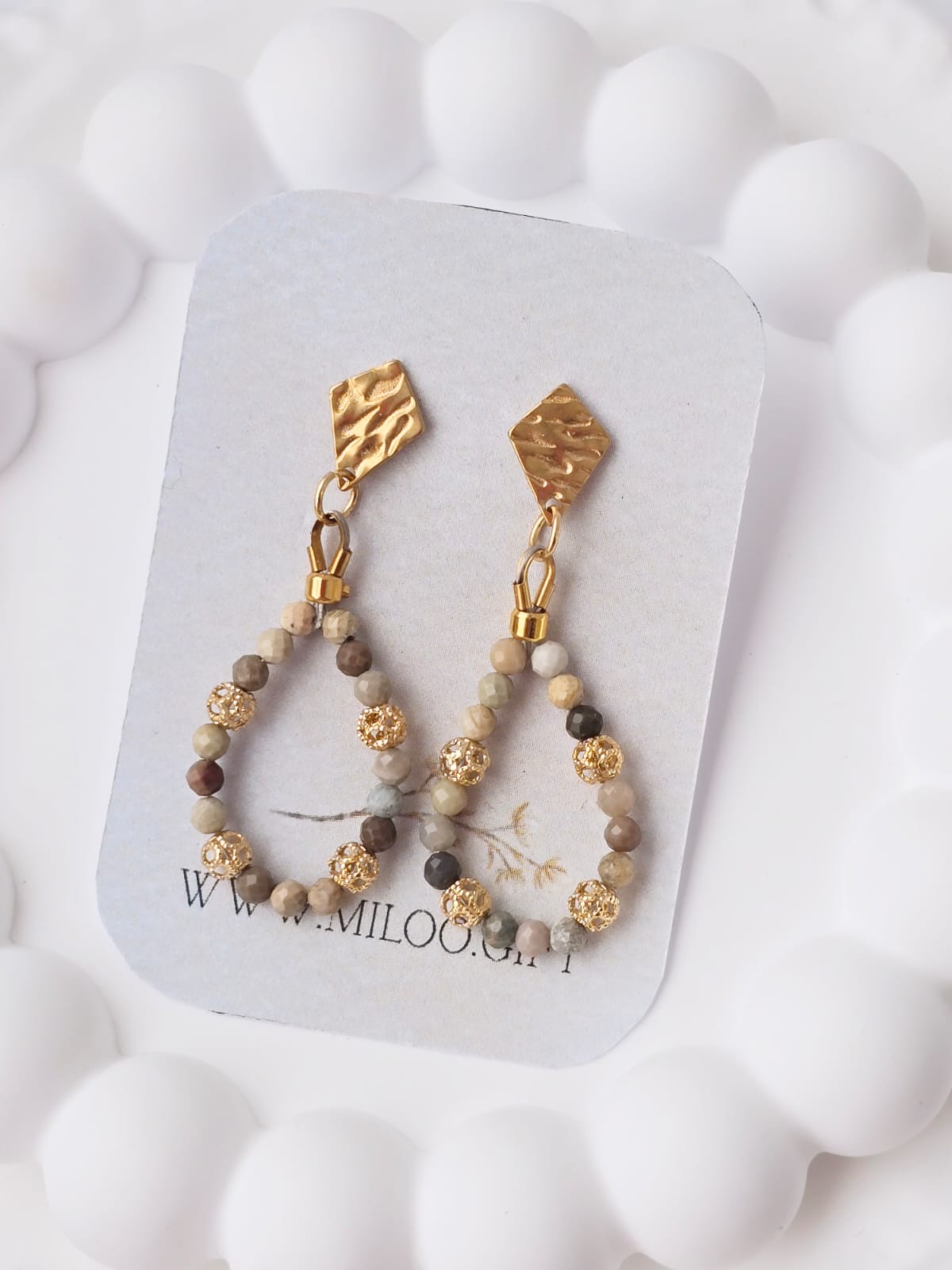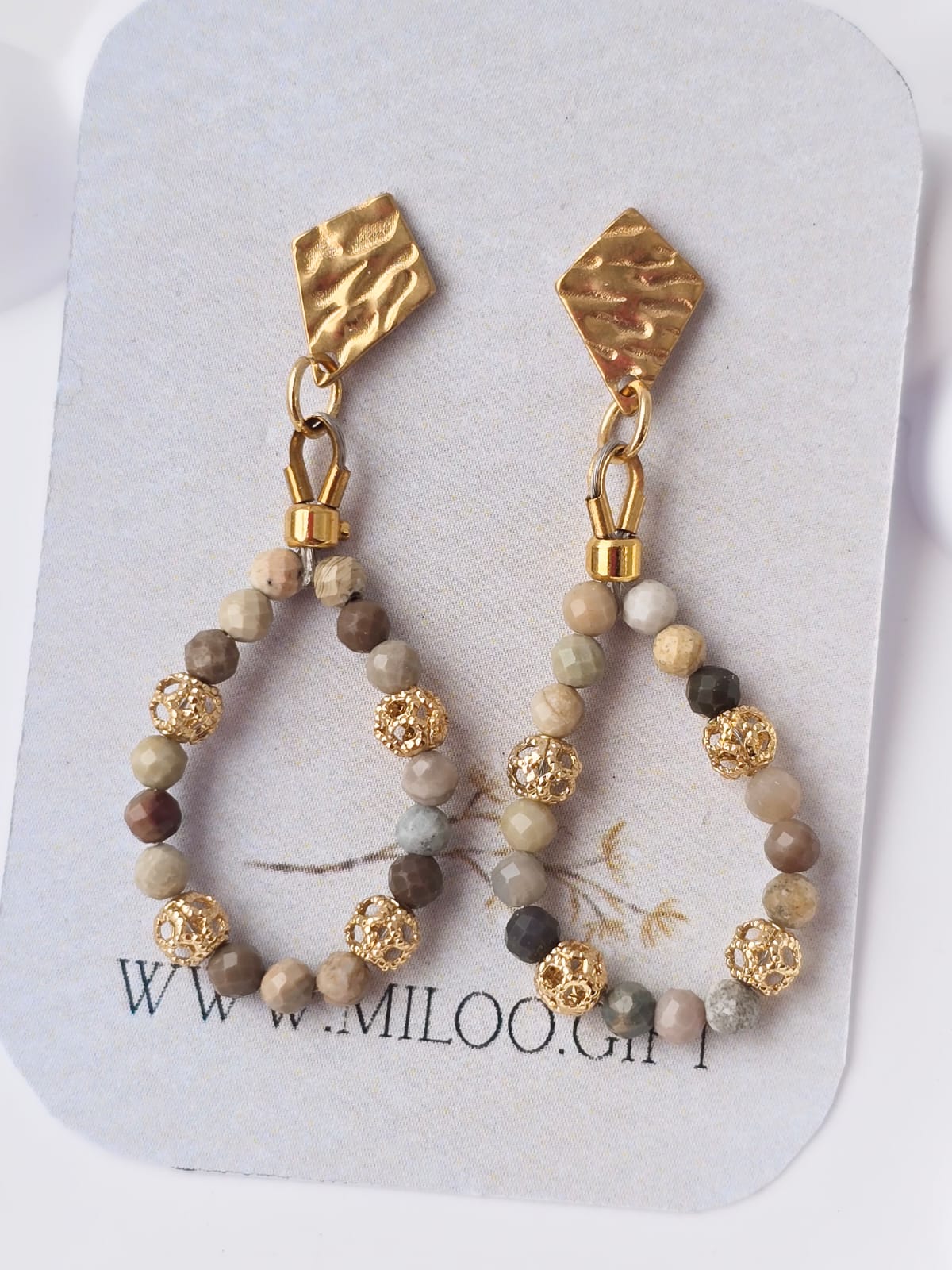 Kolczyki z jaspisem Gobi, oraz pozłacanymi, ozdobnymi dystansami.