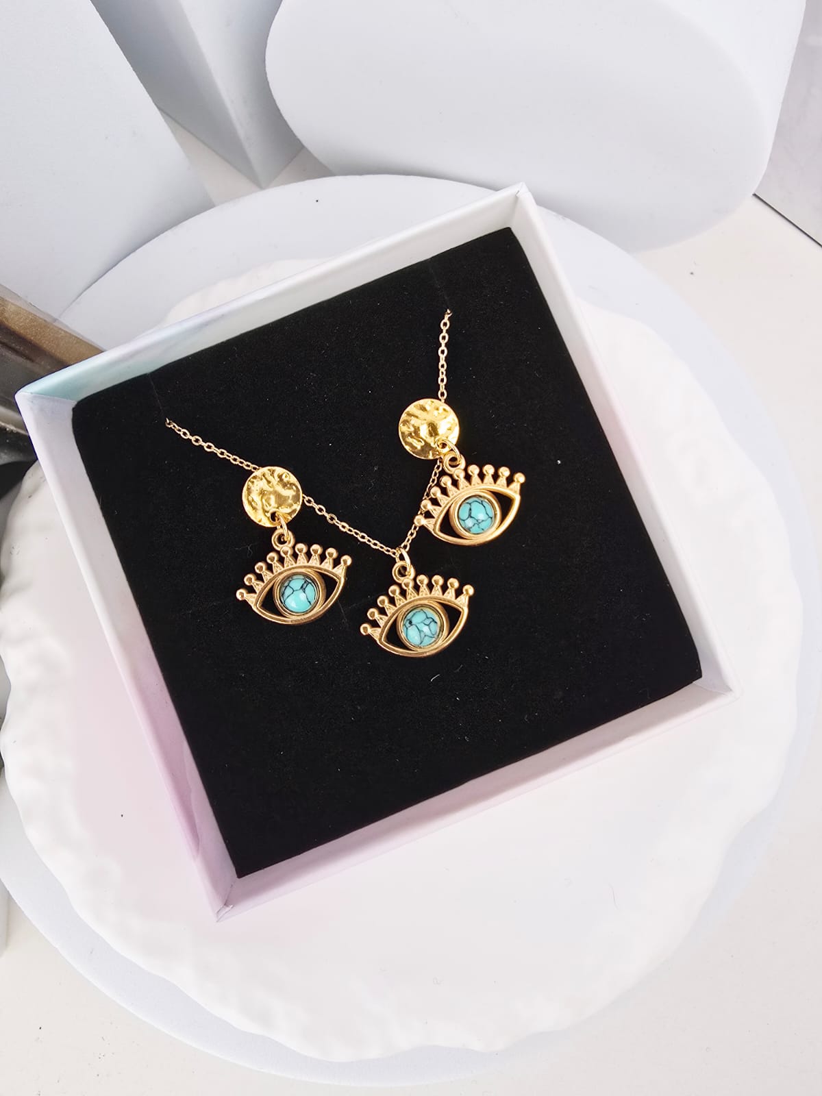 Ręcznie wykonany zestaw- kolczyki i naszyjnik, które łączą siłę natury z subtelną elegancją.